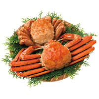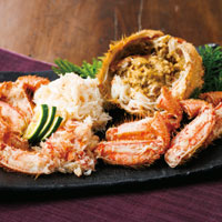 繊細な身質で甘みの強いずわいがにと、濃厚なかにみその北海道産毛がにを丸ごと1杯ずつセットに。味わいの違いを堪能できます。