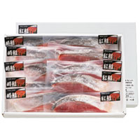 紅鮭切身(ロシア産)80g×5切、時鮭切身(ロシア産)80g×5切:計2種10切 ※塩分:紅鮭100gあたり4.9g 時鮭100gあたり3.1g
