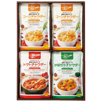 野菜本来のおいしさを大切にしたチャウダースープ。「かぼちゃ」「コーン」「トマト」の3種の味をセットにしました。朝食やランチなどにもおすすめ。温めるだけという手軽さも喜ばれそうです。「カフェ飯シ」とは造語で、カフェに出てくるようなおいしい料理が、ご自宅で簡単に作れる商品を意味します。
