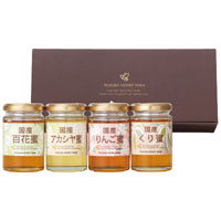 国産アカシヤ蜜150g、国産りんご蜜150g、国産くり蜜150g、国産百花蜜150g:計4種
