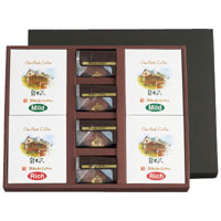 コーヒーに合うお菓子として、濃厚なチョコレートコーチングをチョコレート生地で包み込んで焼き上げた「トリュフショコラケーキ」もいっしょにお届けします。コーヒーとチョコで癒やしの時間を味わってほしい。そんな思いを込めた贈り物としてご活用ください。