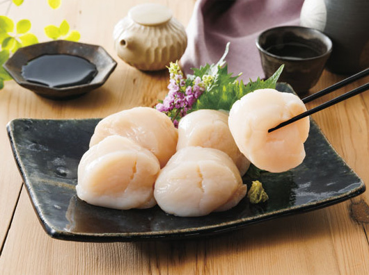 肉厚で大きなほたて貝柱です。舌ざわりはなめらかでほんのり甘く、調味料をつけるのがもったいないくらい。贈りものに最適。