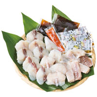 ふぐちりは、ふぐの骨から出るだしが決め手。そこで、マフグの骨付きぶつ切りとアラ(ともに国産)を400gお届け。大日本水産会が認定したHACCP取得工程で、ていねいにふぐ毒がないことを確認してから、新鮮なまま加工し、急速凍結しました。