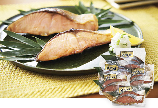 北海道産の鮭にたっぷり塩を振り、約6日間熟成。その後、井戸水に18時間つけて塩を抜き、天気や風の方向を見ながらていねいに寒風干しをします。焼けば、パリッとした皮、身から染み出るうまみをご堪能いただけます。