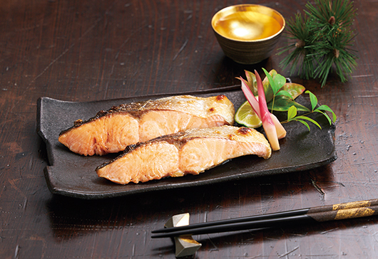 希少な北海道産の時鮭を使用しています。春から夏にかけて北海道沖で漁獲される、脂がのった若い鮭です。振り塩をし、使いやすいよう切り身を個包装にしました。身は厚くふっくら、ごはんがすすみます。