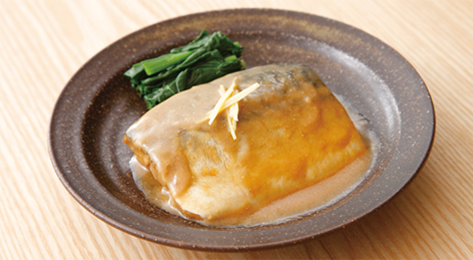 信州味噌と白味噌をブレンドしたまろやかな味噌味がよくからむよう低温調理でふっくら仕上げました。