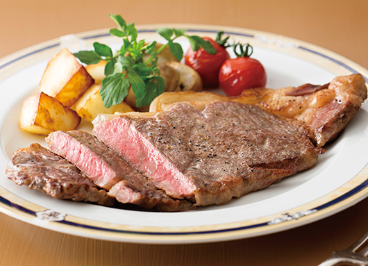 口に入れるとスッと溶ける脂に、濃いうまみのステーキ肉。すすき牧場(福岡県)より。