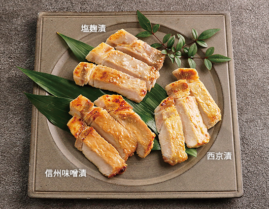 信州味噌漬、西京漬、塩麹漬を食べ比べできます。