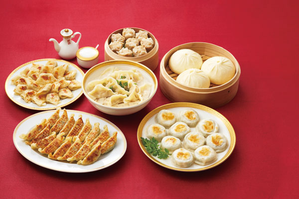 ひと口餃子は小さい子どもでも食べやすい人気商品。にらまんじゅうは肉汁があふれます。産直豚肉で作った肉まんなどをセットに。