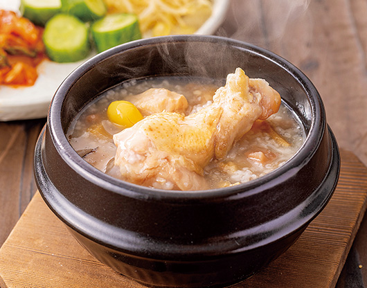 ホロホロの手羽元や大きめカットのムネ肉入りで、お米や具材に鶏肉のうまみがしみ込んだやさしい味わいの参鶏湯風スープごはん。