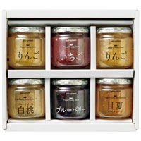いちごジャム200g、ブルーベリージャム200g、甘夏マーマレード200g、りんごジャム200g×2、白桃フルーツソース190g:計5種6個