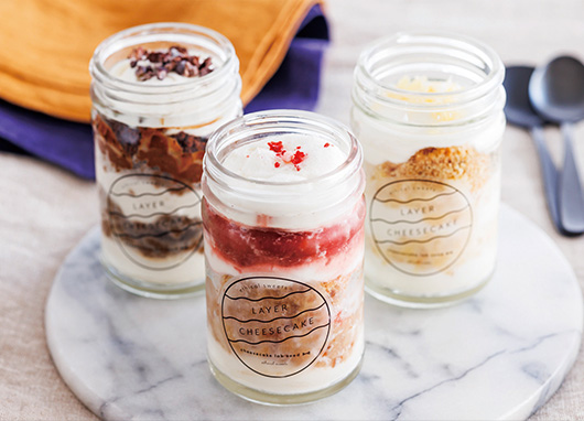 こだわりの素材を何層にも重ねることで、いろいろな食感を楽しむことができるレイヤーチーズケーキ。人気の3種をセットに。