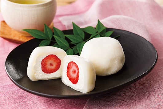 いちごがゴロッと丸ごと1個入った生クリーム大福。国産のいちごの甘酸っぱさと生クリームのコク、米粉から作ったもちのもちもち食感が絶妙にマッチした人気の和風スイーツです。おいしさはもちろん、ひとつ食べれば大満足のボリューム感。冷凍だから賞味期間60日と日もちするのもうれしいポイントです。