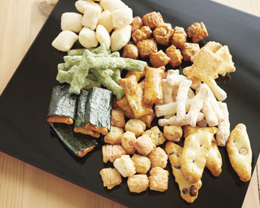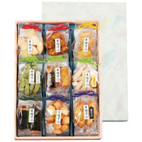 1931年(昭和6年)創業。京あられの名店「鞍馬庵」。9種類の味を楽しめる京あられセットです。