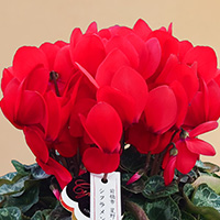 星野さんが作出した真っ赤なシクラメン「赤城」。花立ち、花のボリュームもさることながら、春先まで楽しめます。