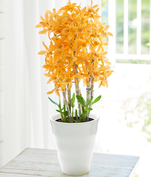 鮮やかなオレンジ色が魅力の日本生まれのデンドロビウム。国際園芸博フロリアード2002で金賞を受賞した名花です。