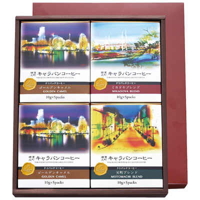 昭和3年(1928年)創業の「横濱元町キャラバンコーヒー」から。カップに置いて淹れるドリップタイプのコーヒーギフト。