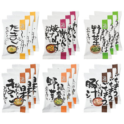 6種のみそ汁をセットにしました。お湯を注ぐだけで簡単に具材感があり、だしのきいた味噌汁が味わえます。